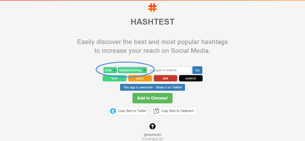 HashTest is a Hashtag finder among popular social media platforms like Facebook, Instagram, and Twitter. HashTest is useful to know the popularity index of a particular tag that you would like to add to your post before publishing it on the platform. Based on color, determines the popularity green suggests best, orange suggests Good, etc.