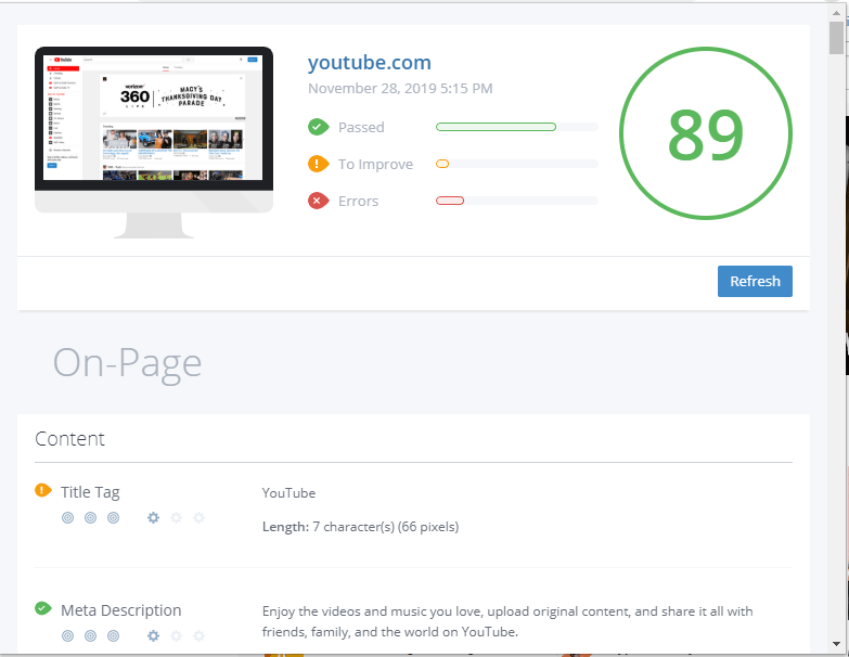 WooRank helps you get a deep analysis of the website. It has the ability to quickly survey the page and provide On-page and Off-page analysis reports.