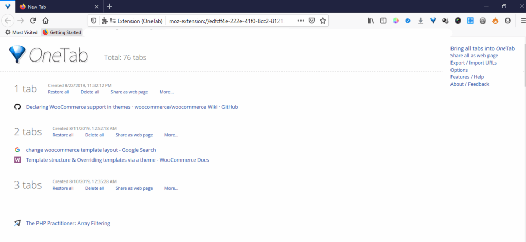As Digital marketers, we need to research different aspects of the topics that we are working with. From reading the latest updates to writing blog posts, we keep working with endless browser tabs. This eventually eats more memory and becomes messy for us to check which tabs were useful and which dint. Well, with OneTab convert all the open tabs into a list. This list will be on the extension until you delete them.