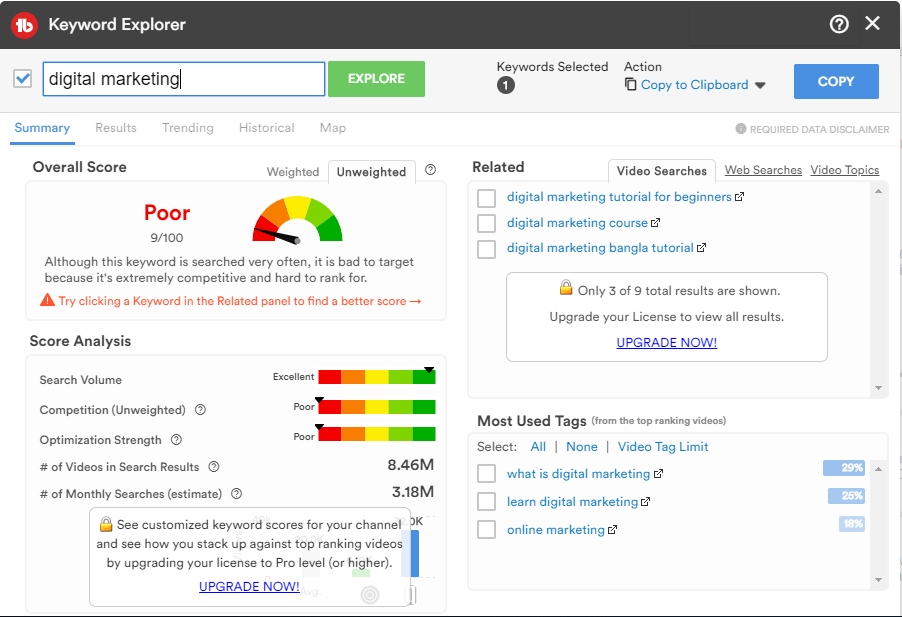 This extension helps you to perform YouTube video optimization (video SEO). It also allows you to manage your youtube channel. The extension is free to use and also has a paid account with tons of extra features to customize your SEO for videos. They are also officially Youtube certified.