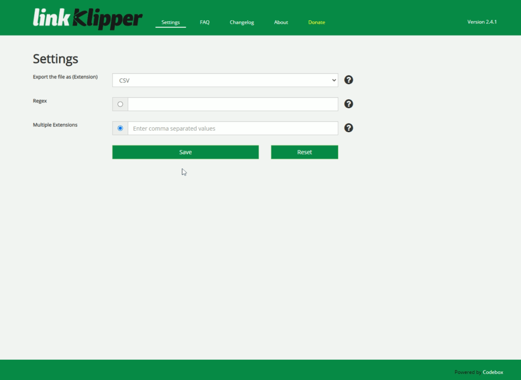 To extract entire links of a web page you have, a “Extract all links” button, that provides a CSV file with hyperlink and Anchor text. It also provides options to use Regular Expression to extract the specific types of links and extensions.